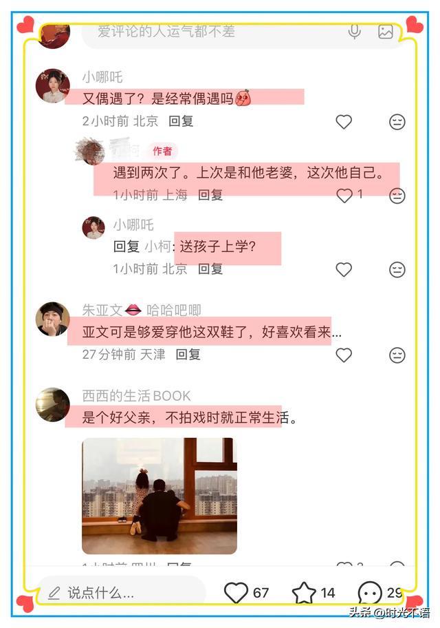 偶遇的博主说她跟朱亚文还聊了几句,朱亚文声音很好听,很有磁性!之前他在《身临其境》配音,那低音炮似的嗓音,很有魅力!该博主说之前还偶遇朱亚文和他老婆!